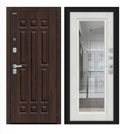 Семь усиливающих уголков и защитный карман для замков. Дополнительную стойкость ко взлому обеспечивают два противосъемных штыря.