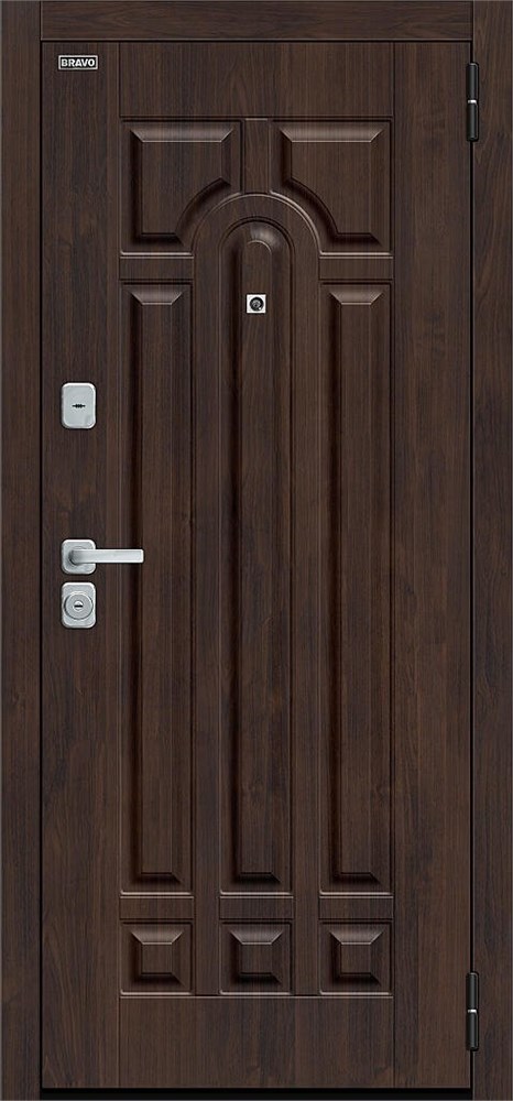 Семь усиливающих уголков и защитный карман для замков. Дополнительную стойкость ко взлому обеспечивают два противосъемных штыря.