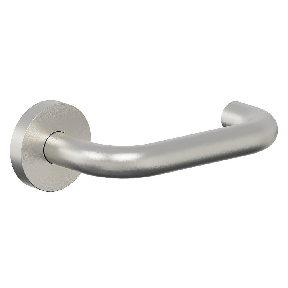 Ручка дверная на круглой розетке, предназначена для установки на межкомнатные и входные двери.
