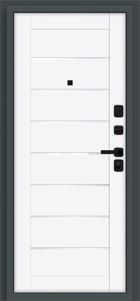 Семь усиливающих уголков и защитный карман для замков. Дополнительную стойкость ко взлому обеспечивают два противосъемных штыря.