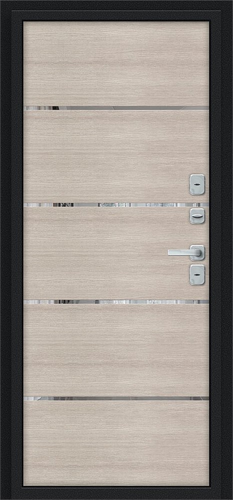 Терморазрыв (термомост) из натуральной пробки по периметру полотна. Внутри полотна установлена конструкционная теплоизоляционная панель SIP (Structural Insulated Panel), которая не только обеспечивает необходимую тепло- и шумоизоляцию, но и придает дополнительную жесткость и прочность дверному блоку.