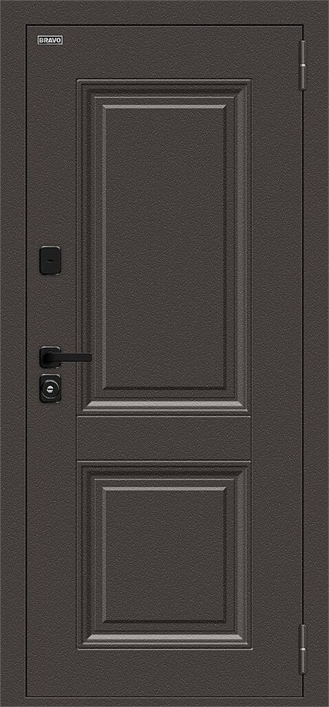 Стальной дверной блок энергосберегающей конструкции с двойным терморазрывом (термомостом), четырехконтурным уплотнением и уникальным цилиндром с термоштоком. Поставляется с правым и левым открыванием наружу.